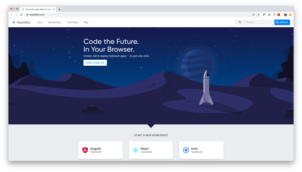 The online code editor for web apps. Powered by Visual Studio Code. - StackBlitz